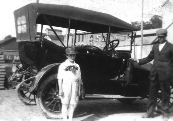 Attached is a photo of my Grandpa (L. P."Curly" Myers) at age 7 and his dad (Hugh) with their new